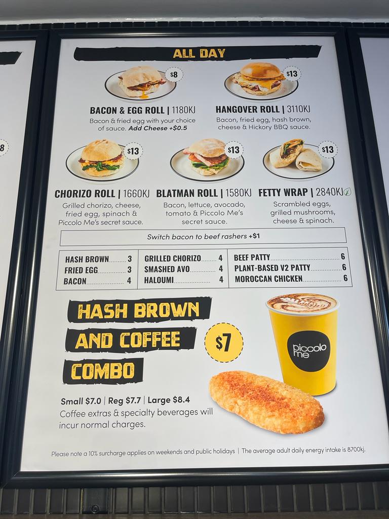 Grilled chorizo, fried egg, cheese, spinach & Piccolo Me’s secret sauce. | 1687KJ